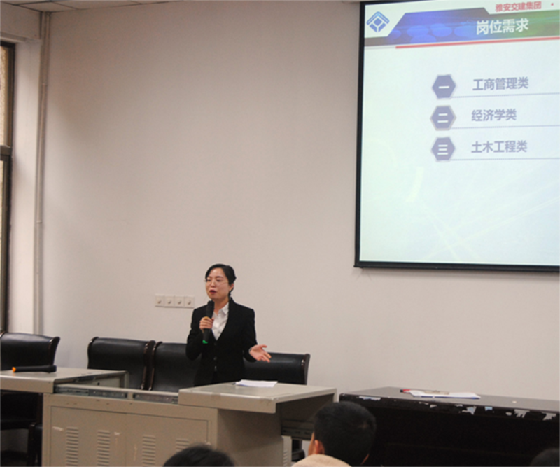 11月15日,由雅安市委、市政府主辦,雅安市委組織部、雅安市委機(jī)構(gòu)編制委員會辦公室、雅安市人力資源和社會保障局承辦的2018年“雅州英才”工程赴外招才引智高校行活動(dòng)走進(jìn)四川大學(xué)(望江校區(qū)),交建集團(tuán)招聘代表參加了現(xiàn)場宣講活動(dòng)。