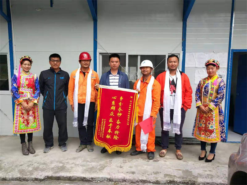 9月10日,中共寶興縣磽磧藏族鄉(xiāng)委員會(huì)、寶興縣磽磧藏族鄉(xiāng)人民政府敲鑼打鼓將一面“爭(zhēng)分奪秒,奮力搶險(xiǎn);心系群眾,樂于奉獻(xiàn)”的十六字錦旗和一封感謝信送到了雅安交建集團(tuán)路橋公司寶興駐地。表達(dá)了寶興人民對(duì)交建集團(tuán)在“8·22”特大洪災(zāi)抗洪搶險(xiǎn)中為當(dāng)?shù)乩习傩兆鰧?shí)事、解危難的感激之情。