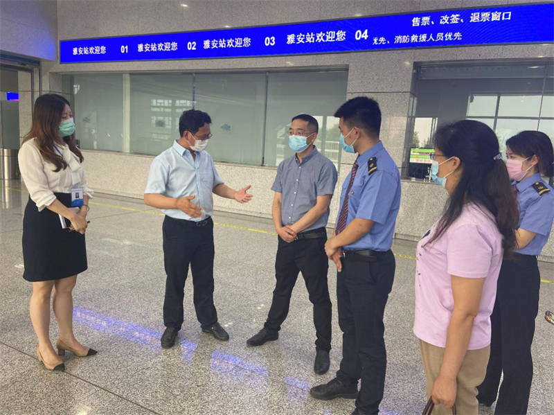 陳武一行分別檢查了火車站出、入站口的人員登記、測溫、掃碼等防疫措施落實(shí)情況,聽取了相關(guān)情況匯報,對運(yùn)通公司開展雅安火車站疫情防控工作以來所取得的成效給予了充分肯定。