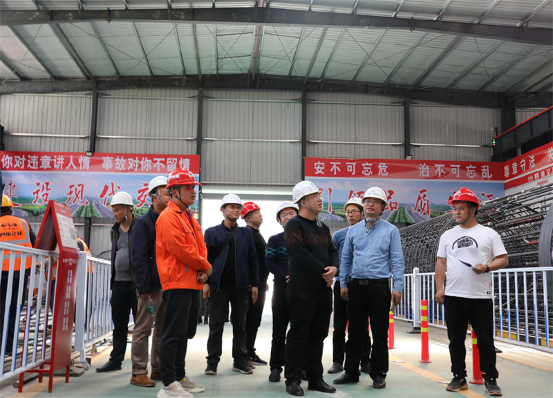 羅倫全一行通過聽取介紹、實地查看、座談交流的方式,重點就項目部駐地規(guī)范化、精細化建設,鋼筋加工場、拌合站、隧道洞口等主要施工場地的場地規(guī)劃、安全設施布置,鋼筋加工場和拌合站智能化、標準化作業(yè),隧道工程科學化施工、黨建文化生活、勞務管理等進行全面學習交流。