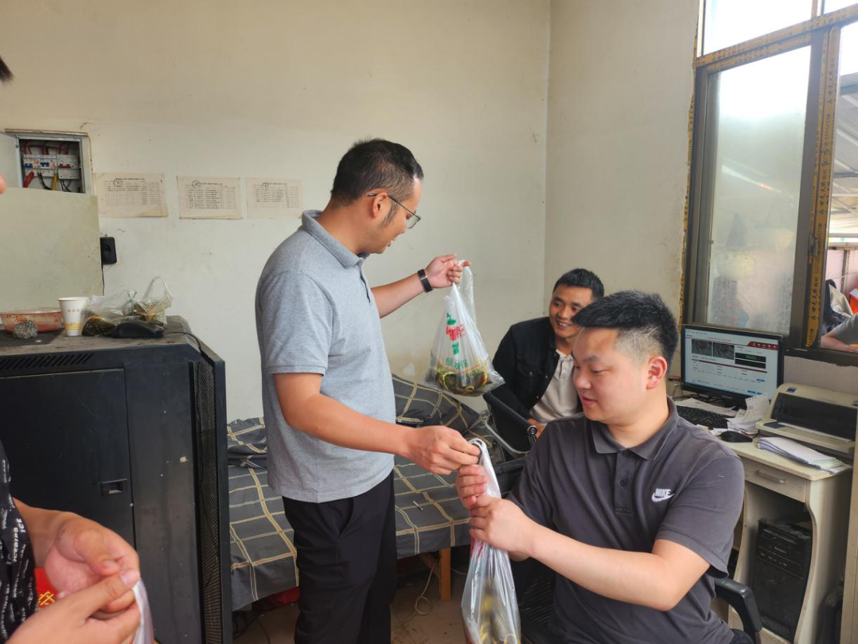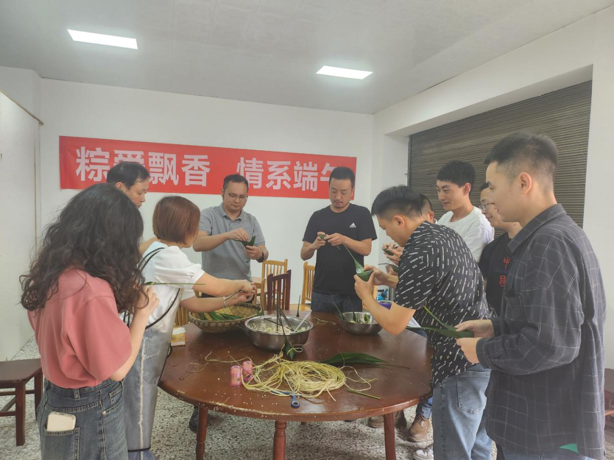 公司食堂內(nèi),歡聲笑語一片!大家通力合作,在廚房阿姨的教學下包出一個個清香軟糯的愛心粽子,一起品嘗分享,整個活動過程洋溢著祥和歡快的節(jié)日氛圍。為讓堅守在代碑寺項目一線崗位的員工感受到組織的溫暖,隨后,公司總經(jīng)理張忠強帶隊奔赴代碑寺項目一線崗位,將包好的粽子送到員工手中,并送去節(jié)日的祝福。