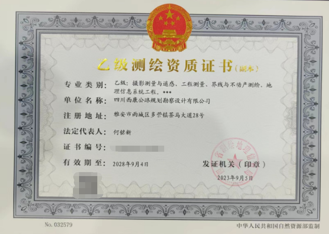 近日,經(jīng)四川省測繪地理信息局批準(zhǔn),雅安交建集團(tuán)西康勘察設(shè)計有限公司取得測繪乙級資質(zhì)證書,標(biāo)志著公司在經(jīng)營產(chǎn)業(yè)多元化和專業(yè)化發(fā)展上取得重要突破。