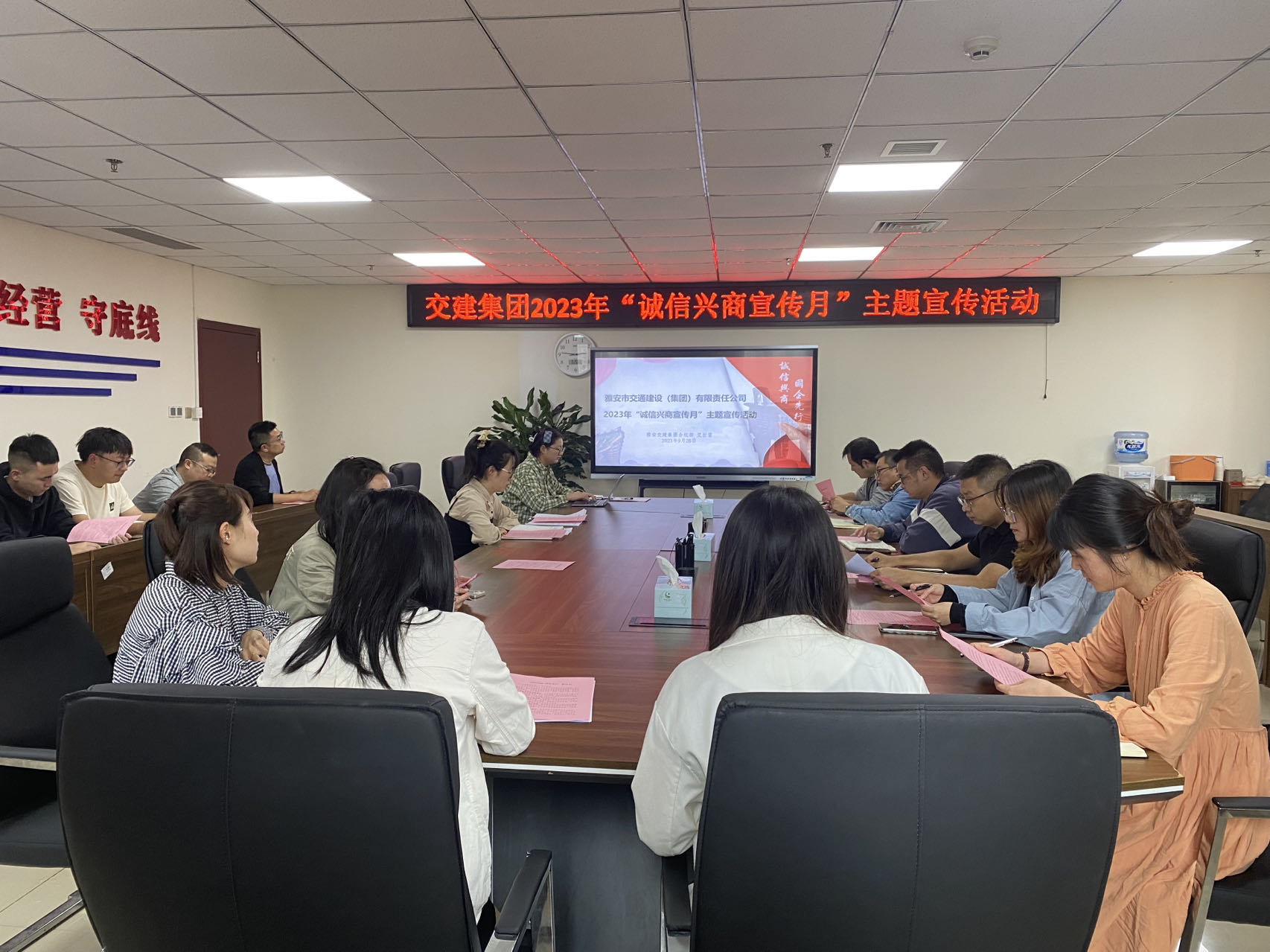 為推動集團及各子公司形成誠信公約,營造良好營商環(huán)境和消費環(huán)境,9月26日,雅安交建集團組織開展“誠信興商主題宣傳”活動。集團公司及所屬子公司30余人參加活動。