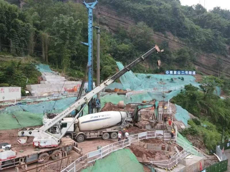 “咚咚咚……”在雨城區(qū)多營(yíng)鎮(zhèn)五營(yíng)村熊家山二號(hào)隧道出口端空地上,旋挖鉆機(jī)開足馬力,朝著地層深處掘進(jìn),不斷發(fā)出富有節(jié)奏的聲響!懊總(gè)樁基有二十多米深!眹318線名山區(qū)黑竹(成都界)至雨城區(qū)多營(yíng)段改建工程項(xiàng)目副經(jīng)理林洲,每天都要到各施工點(diǎn)位查看進(jìn)度。他說,熊家山二號(hào)隧道附近山體為順層帶,易產(chǎn)生滑坡,進(jìn)洞施工前需要先在洞外打抗滑樁,以確保施工安全,目前還在開展剩下3根抗滑樁的施工。