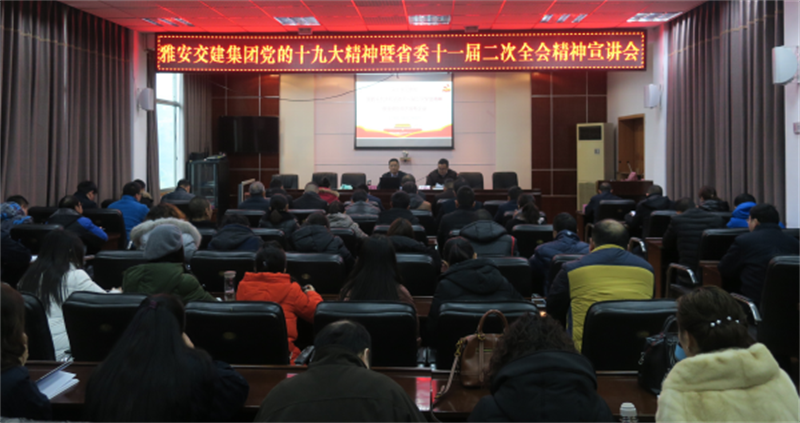 1月5日下午,市交建集團(tuán)舉行專題宣講會(huì),集中學(xué)習(xí)黨的十九大暨省委十一屆二次全會(huì)精神。會(huì)議邀請雅安市委黨校副校長楊國先同志作專題輔導(dǎo),集團(tuán)公司黨委書記、董事長漆家華主持輔導(dǎo)會(huì)并講話,交建集團(tuán)全體黨員、經(jīng)營班子成員、中層干部參加學(xué)習(xí)。