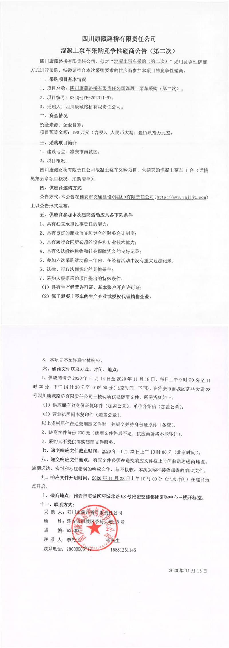 四川康藏路橋有限責(zé)任公司混凝土泵車采購競爭性磋商公告(第二次)