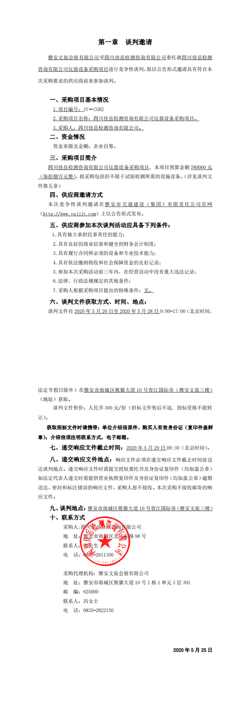 四川佳岳檢測(cè)咨詢有限公司儀器設(shè)備采購(gòu)項(xiàng)目競(jìng)爭(zhēng)性談判公告