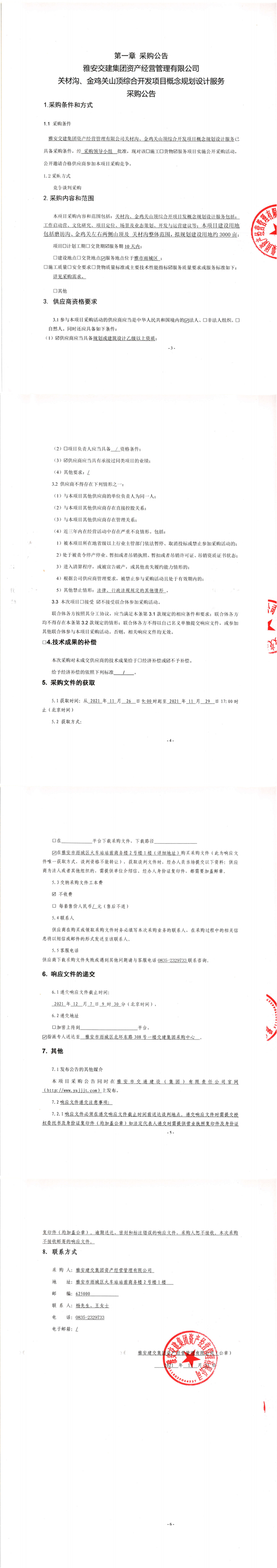 雅安交建集團資產(chǎn)經(jīng)營管理有限公司關(guān)材溝、金雞關(guān)山頂綜合開發(fā)項目概念規(guī)劃設(shè)計服務采購公告