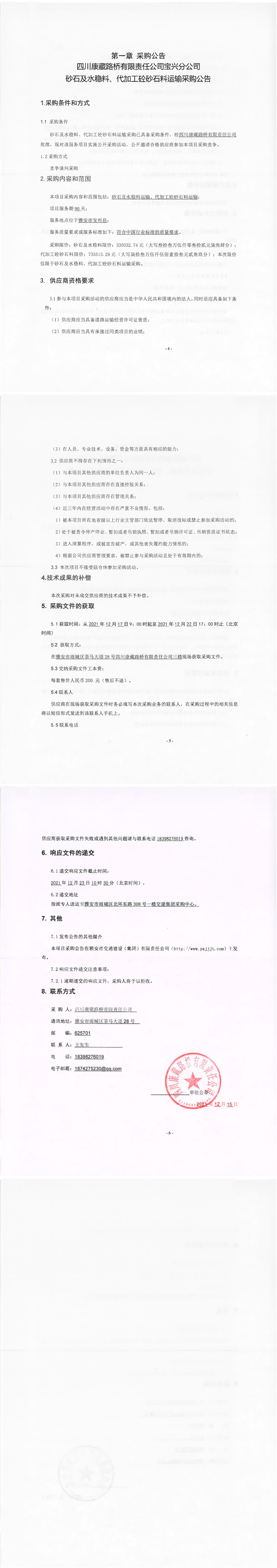 四川康藏路橋有限責任公司寶興分公司砂石及水穩(wěn)料、代加工砼砂石料運輸采購公告
