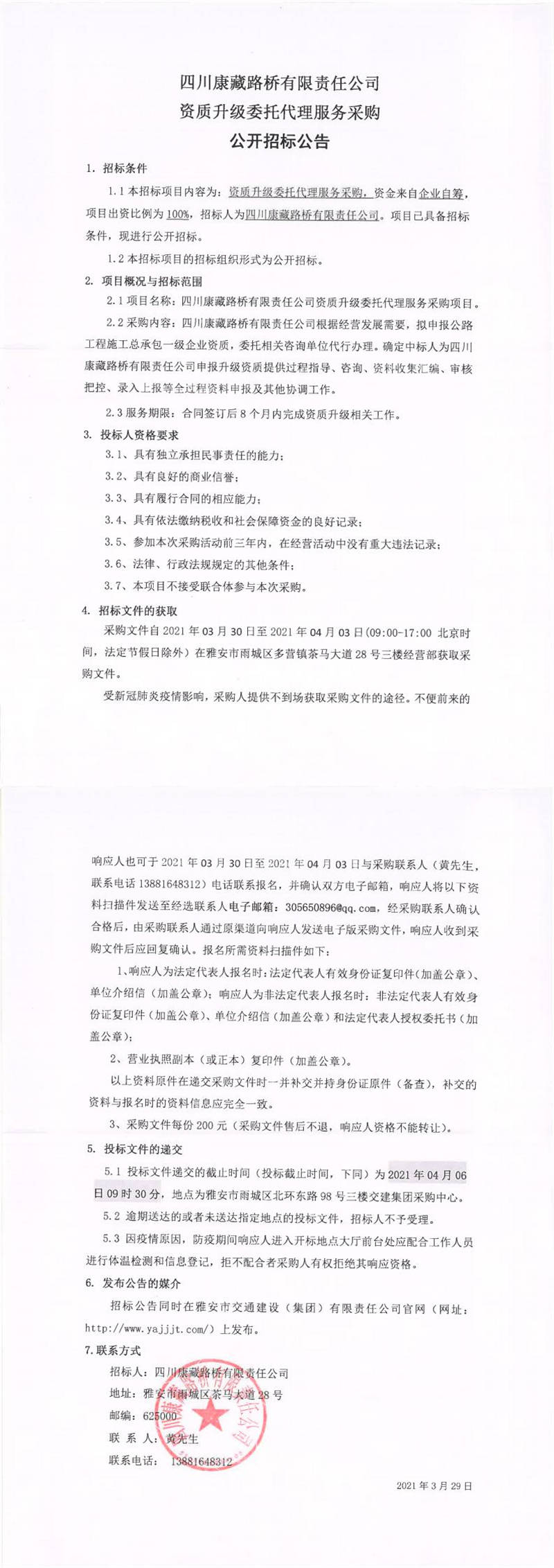 四川康藏路橋有限責(zé)任公司資質(zhì)升級委托代理服務(wù)采購公開招標(biāo)公告