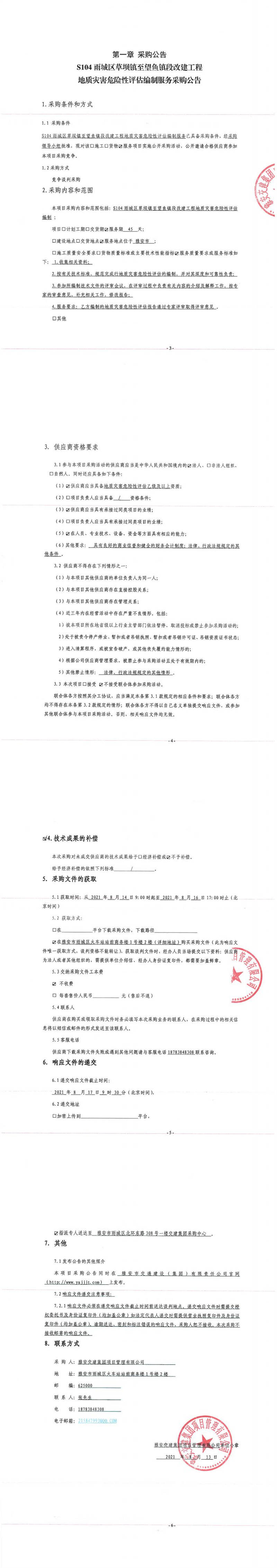 雅安交建集團(tuán)項(xiàng)目管理有限公司S104雨城區(qū)草壩鎮(zhèn)至望魚(yú)鎮(zhèn)段改建工程地質(zhì)災(zāi)害危險(xiǎn)性評(píng)估編制服務(wù)采購(gòu)公告