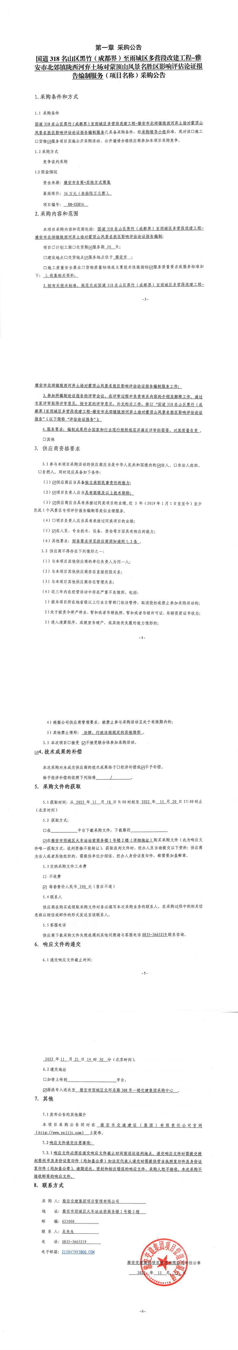 雅安交建集團項目管理有限公司國道318名山區(qū)黑竹(成都界)至雨城區(qū)多營段改建工程-雅安市北郊鎮(zhèn)隴西河棄土場對蒙頂山風景名勝區(qū)影響評估論證報告編制服務采購公告