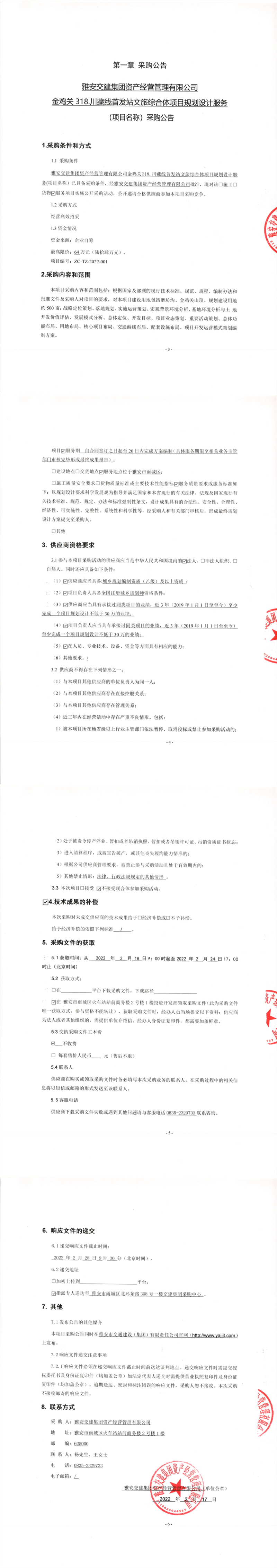 雅安交建集團資產經營管理有限公司金雞關318.川藏線首發(fā)站文旅綜合體項目規(guī)劃設計服務采購公告