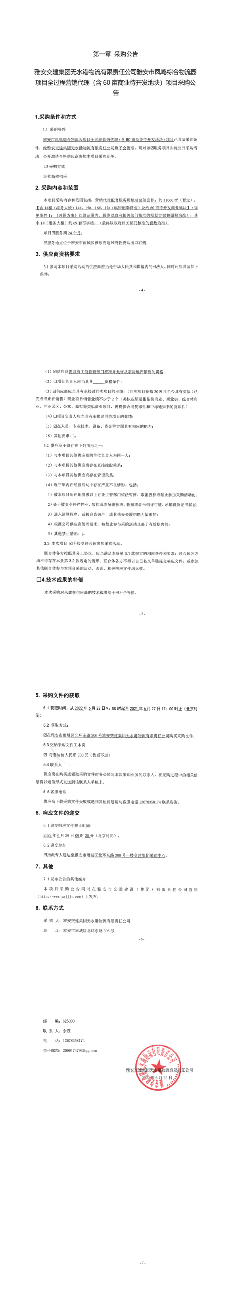 雅安交建集團(tuán)無水港物流有限責(zé)任公司雅安市鳳鳴綜合物流園項(xiàng)目全過程營銷代理(含60畝商業(yè)待開發(fā)地塊)項(xiàng)目采購公告