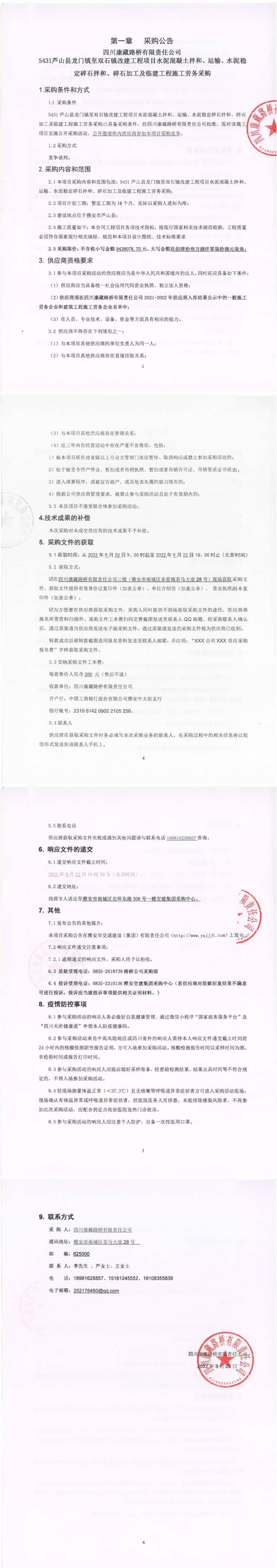 四川康藏路橋有限責(zé)任公司S431蘆山縣龍門(mén)鎮(zhèn)至雙石鎮(zhèn)改建工程項(xiàng)目水泥混凝土拌和、運(yùn)輸、水泥穩(wěn)定碎石拌和、碎石加工及臨建工程施工勞務(wù)采購(gòu)公告