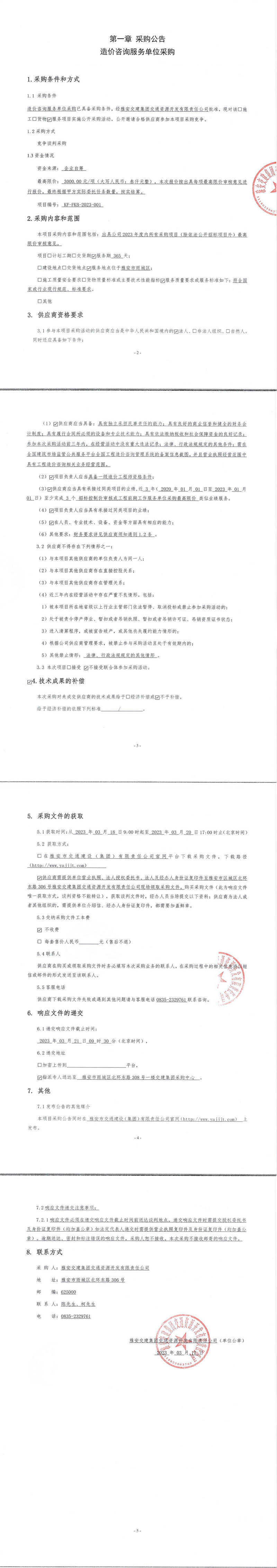雅安交建集團(tuán)交通資源開(kāi)發(fā)有限責(zé)任公司造價(jià)咨詢服務(wù)單位采購(gòu)公告