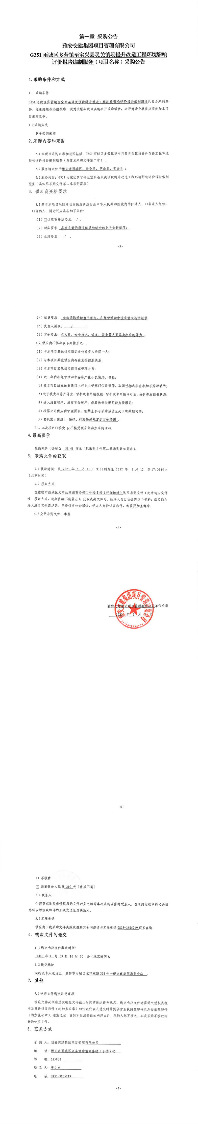 雅安交建集團項目管理有限公司G351雨城區(qū)多營鎮(zhèn)至寶興縣靈關鎮(zhèn)段提升改造工程環(huán)境影響評價報告編制服務(項目名稱)采購公告