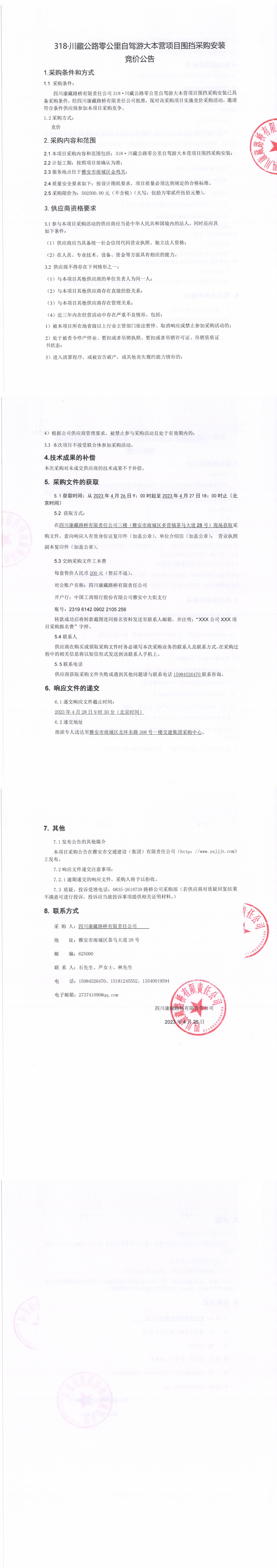 四川康藏路橋有限責(zé)任公司318·川藏公路零公里自駕游大本營項(xiàng)目圍擋采購采購安裝競價公告