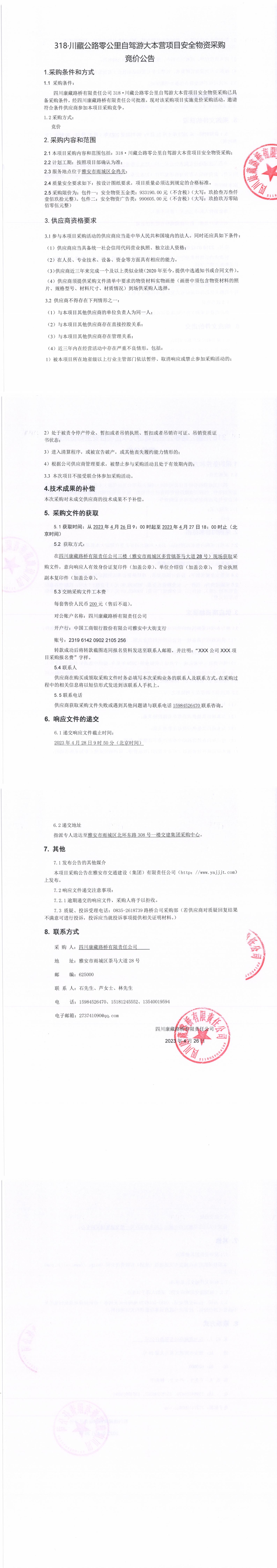 四川康藏路橋有限責(zé)任公司318·川藏公路零公里自駕游大本營項(xiàng)目安全物資采購競價公告