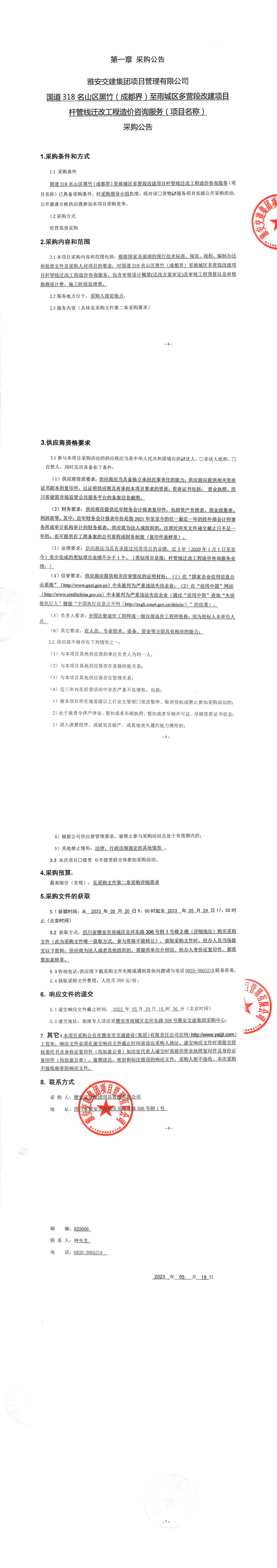 雅安交建集團(tuán)項(xiàng)目管理有限公司國道318名山區(qū)黑竹(成都界)至雨城區(qū)多營段改建項(xiàng)目桿管線遷改工程造價(jià)咨詢服務(wù)(項(xiàng)目名稱)采購公告
