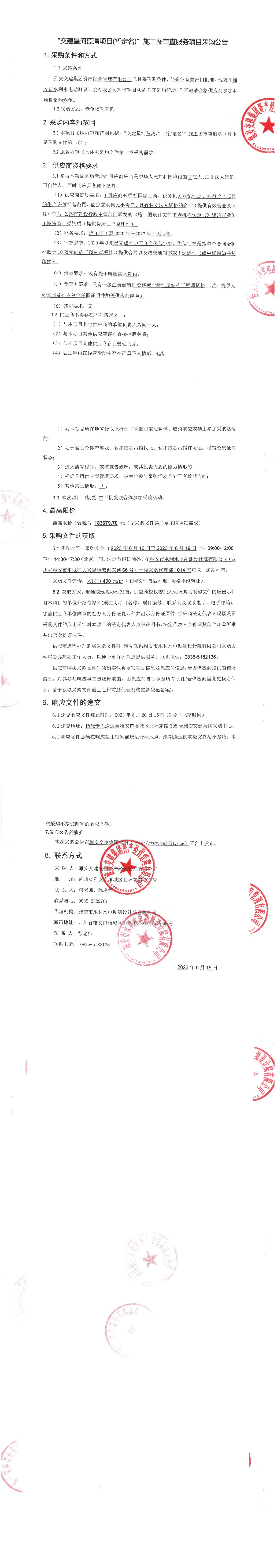 雅安交建集團資產(chǎn)經(jīng)營管理有限公司“交建星河藍(lán)灣項目(暫定名)”施工圖審查服務(wù)項目采購公告