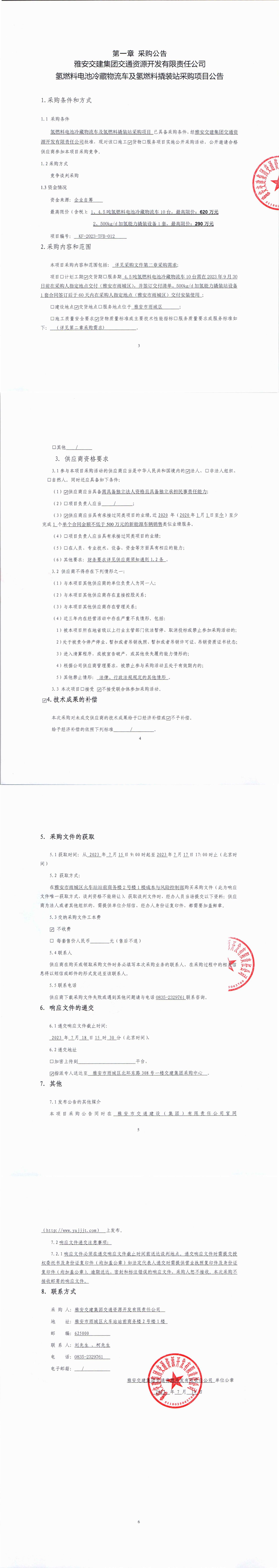 雅安交建集團交通資源開發(fā)有限責任公司氫燃料電池冷藏物流車及氫燃料撬裝站采購項目公告