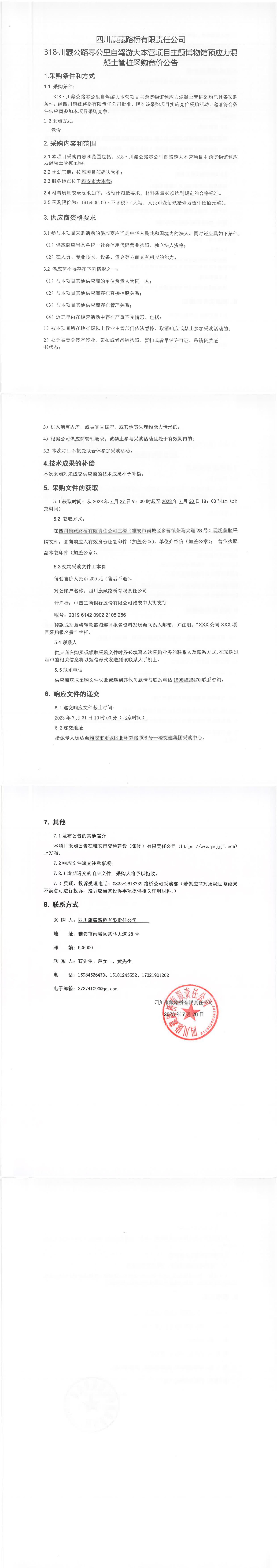 四川康藏路橋有限責(zé)任公司318·川藏公路零公里自駕游大本營項(xiàng)目主題博物館預(yù)應(yīng)力混凝土管樁采購競價(jià)公告