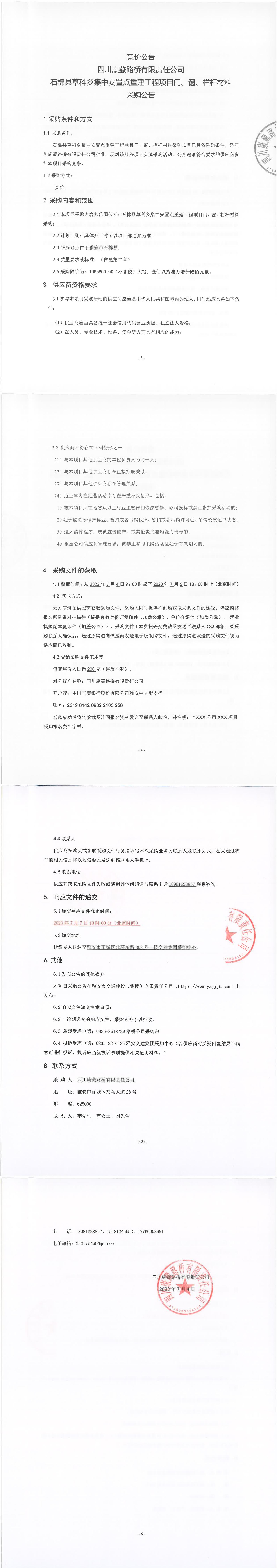 四川康藏路橋有限責(zé)任公司石棉縣草科鄉(xiāng)集中安置點(diǎn)重建工程項(xiàng)目門、窗、欄桿材料采購公告