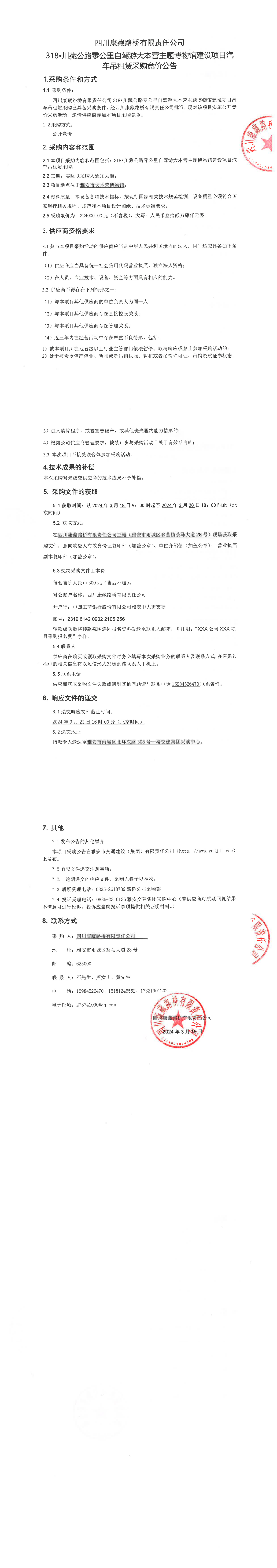 四川康藏路橋有限責(zé)任公司318•川藏公路零公里自駕游大本營主題博物館建設(shè)項(xiàng)目汽車吊租賃采購競價公告