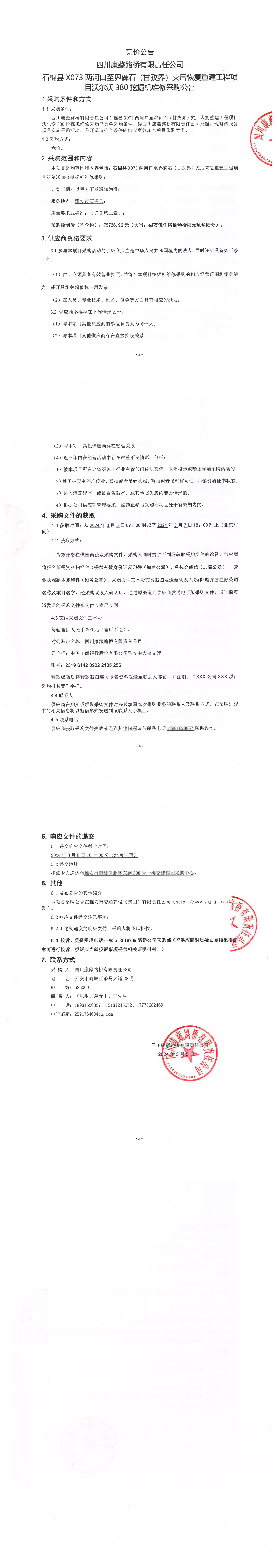 四川康藏路橋有限責(zé)任公司石棉縣X073兩河口至界碑石(甘孜界)災(zāi)后恢復(fù)重建工程項目沃爾沃380挖掘機(jī)維修采購公告