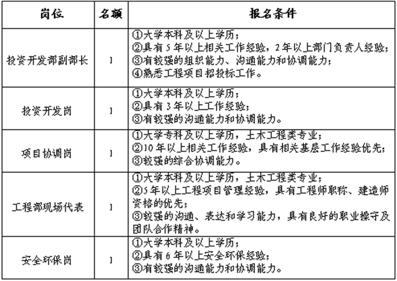 三、報名崗位、名額、條件