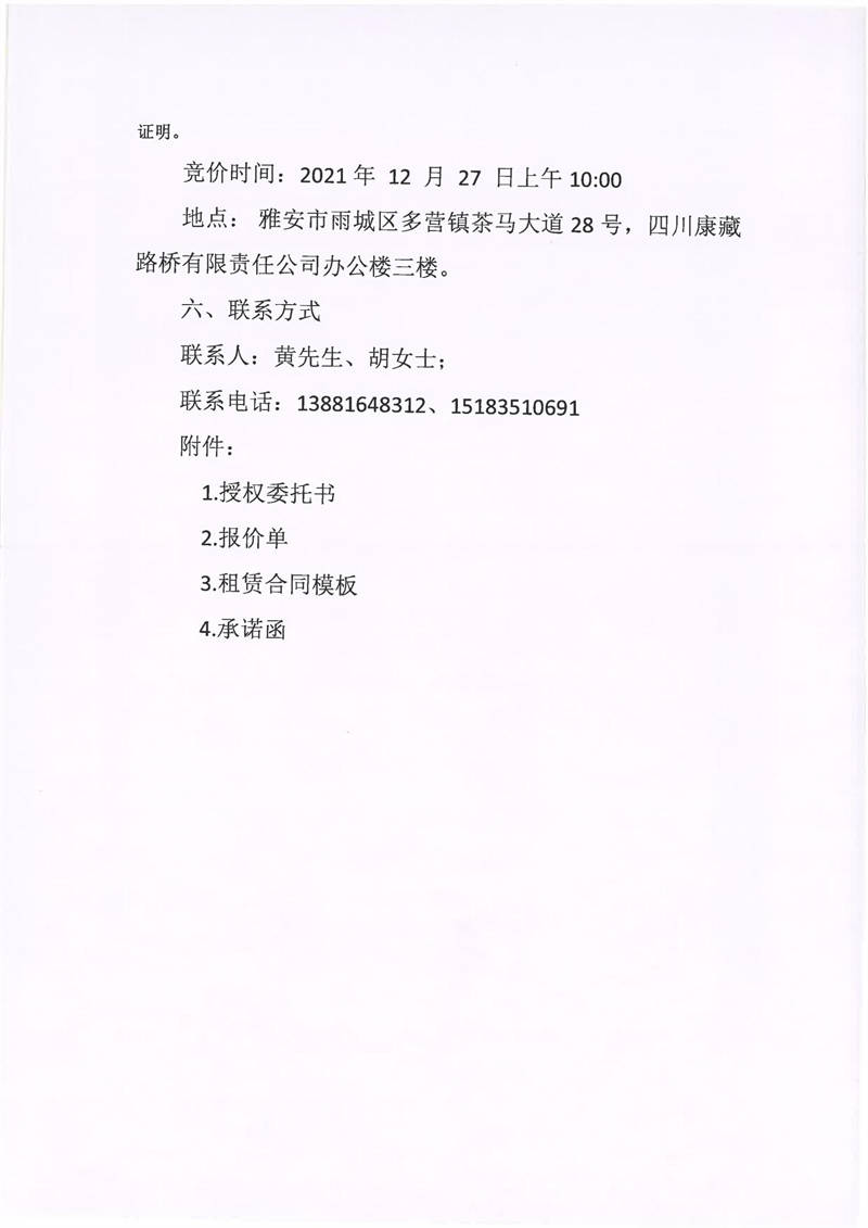 四川康藏路橋有限責任公司關于雅安市雨城區(qū)多營鎮(zhèn)茶馬大道28號三樓9間辦公用房招租的公告
