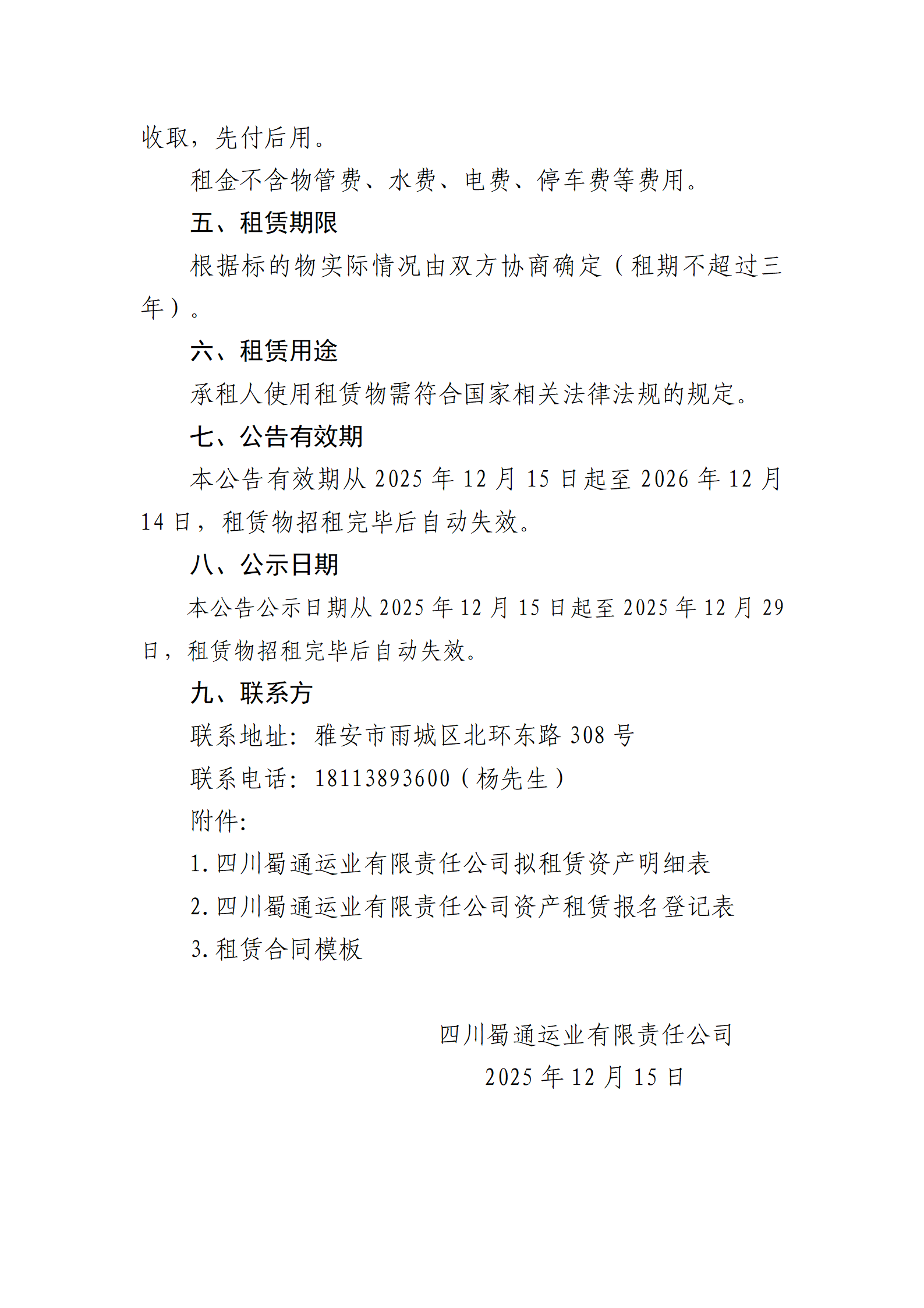 四川蜀通運業(yè)有限責任公司關于蜀通公司各區(qū)縣閑置房屋商鋪場地掛網招租的公告