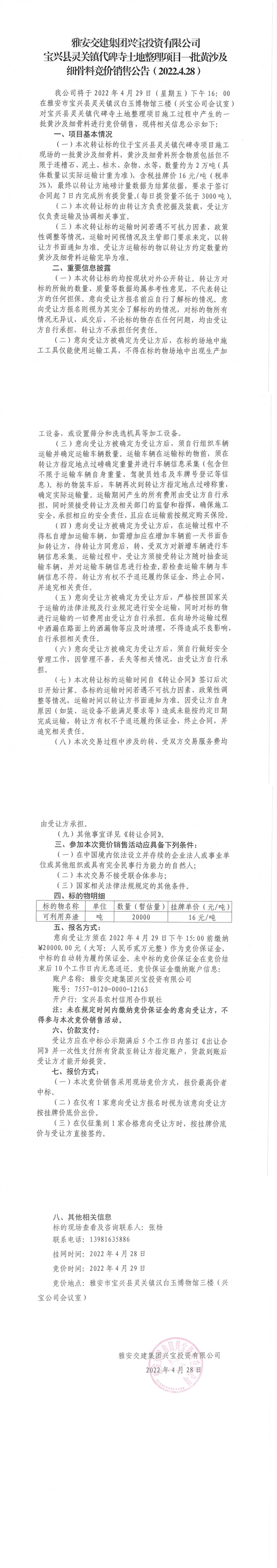ÑŰ²½»½¨¼¯ˆF(tu¨¢n)ÅdŒšÍ¶ÙYÓÐÏÞ¹«Ë¾ŒšÅd¿hì`êP(gu¨¡n)æ‚(zh¨¨n)´ú±®ËÂÍÁµØÕûÀíí—(xi¨¤ng)ĿһÅúüSɳ¼°¼š(x¨¬)¹ÇÁϸ‚(j¨¬ng)ƒr(ji¨¤)äNÊÛ¹«¸æ£¨2022.4.28£©