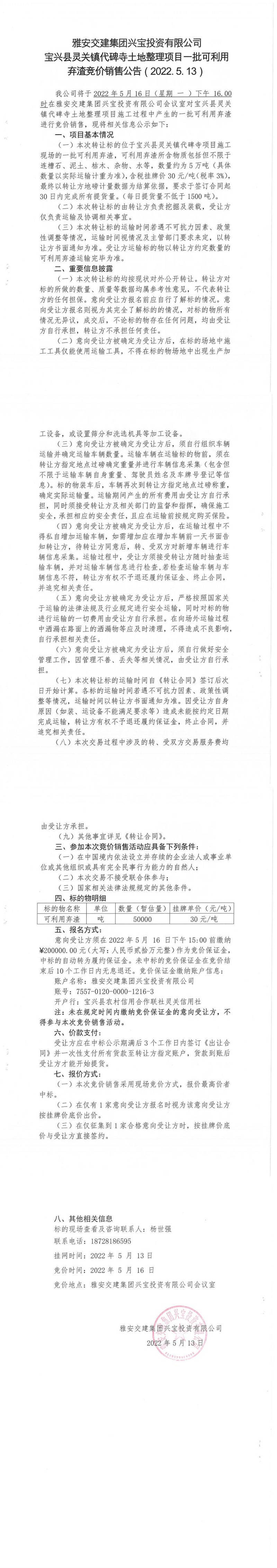 ÑŰ²½»½¨¼¯ˆF(tu¨¢n)ÅdŒšÍ¶ÙYÓÐÏÞ¹«Ë¾ŒšÅd¿hì`êP(gu¨¡n)æ‚(zh¨¨n)´ú±®ËÂÍÁµØÕûÀíí—(xi¨¤ng)ĿһÅú¿ÉÀûÓ׉Ôü¾¹ƒr(ji¨¤)äNÊÛ¹«¸æ£¨2022.5.13£©