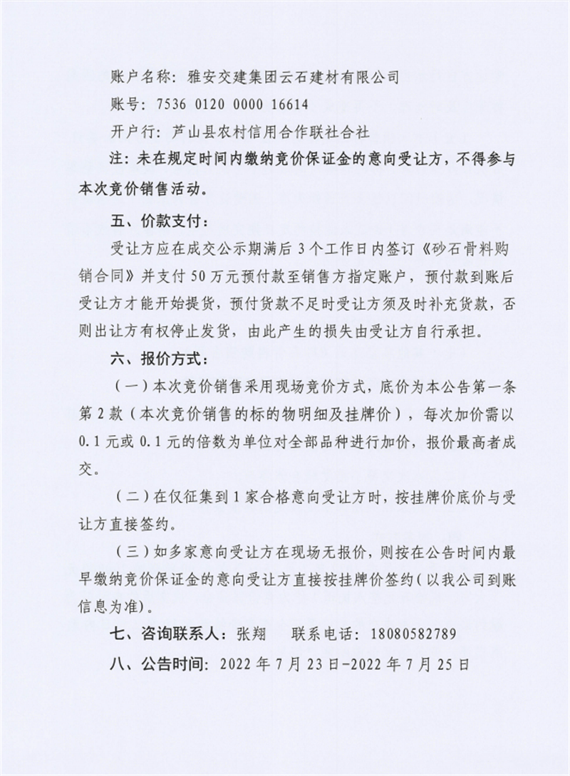 雅安交建集團(tuán)云石建材有限公司成品料競價銷售公告